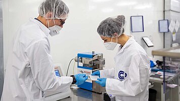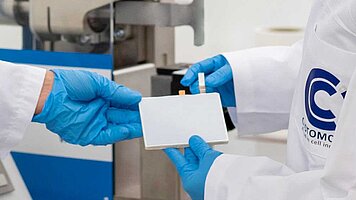 Welding tests in the ultrasonic laboratory showed that the cells used by CUSTOMCELLS® could be joined safely and gently with a special sonotrode design already developed.