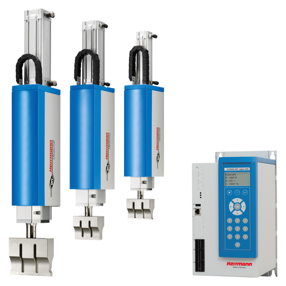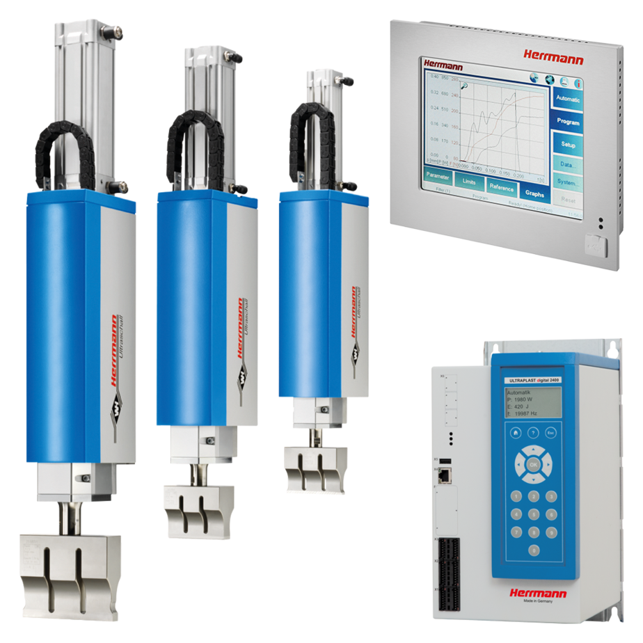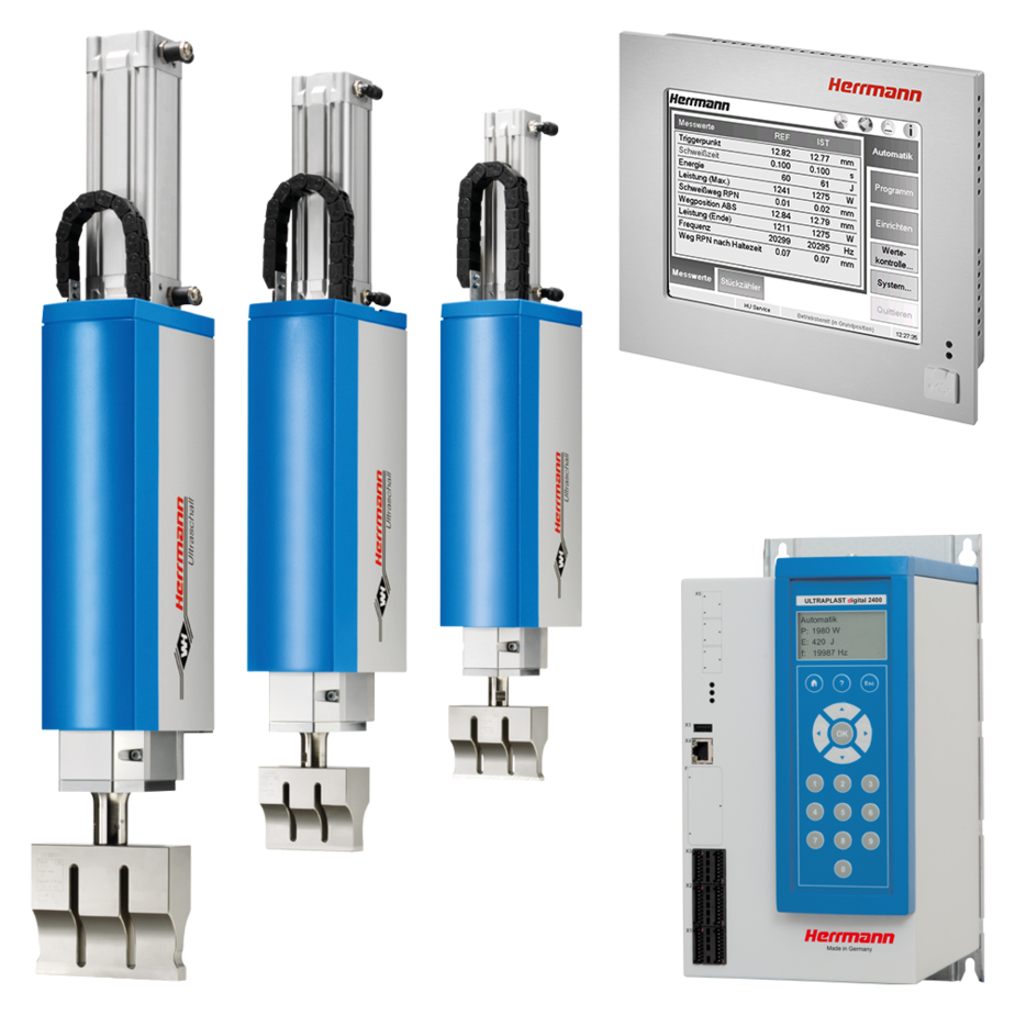Depending on the applications to be solved, Herrmann offers a choice between two system variants: VE SLIMLINE SOLID STE and VE SLIMLINE SOLID SDM with position measuring system. Both variants are equipped with proportional valve technology and digital high-performance generators. These basic systems already fulfill all the necessary functions for ensuring 100% quality welding. The compact design of the actuators and generators allows maximum ultrasonic quality with a minimum space requirement.