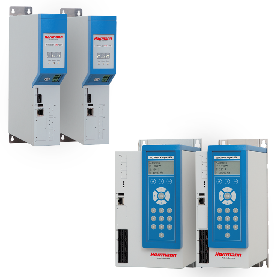 Geradores de ultrassom versáteis para aplicações de embalagem intermitente e contínuo - O gerador de ultrassom ULTRAPACK digital é projetado para uso com máquinas de embalagem de operação rápida. Suas diversas funções de software permitem o controle repetitivo do processo de soldagem, resultando na mais alta qualidade da selagem possível. O digital ULTRAPACK é uma parte integral dos módulos PACKLINE da Herrmann.